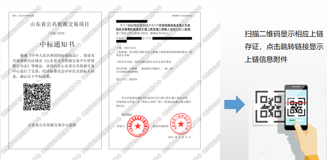 助力山东省公共资源交易中心成功发出第一张区块链中标通知书